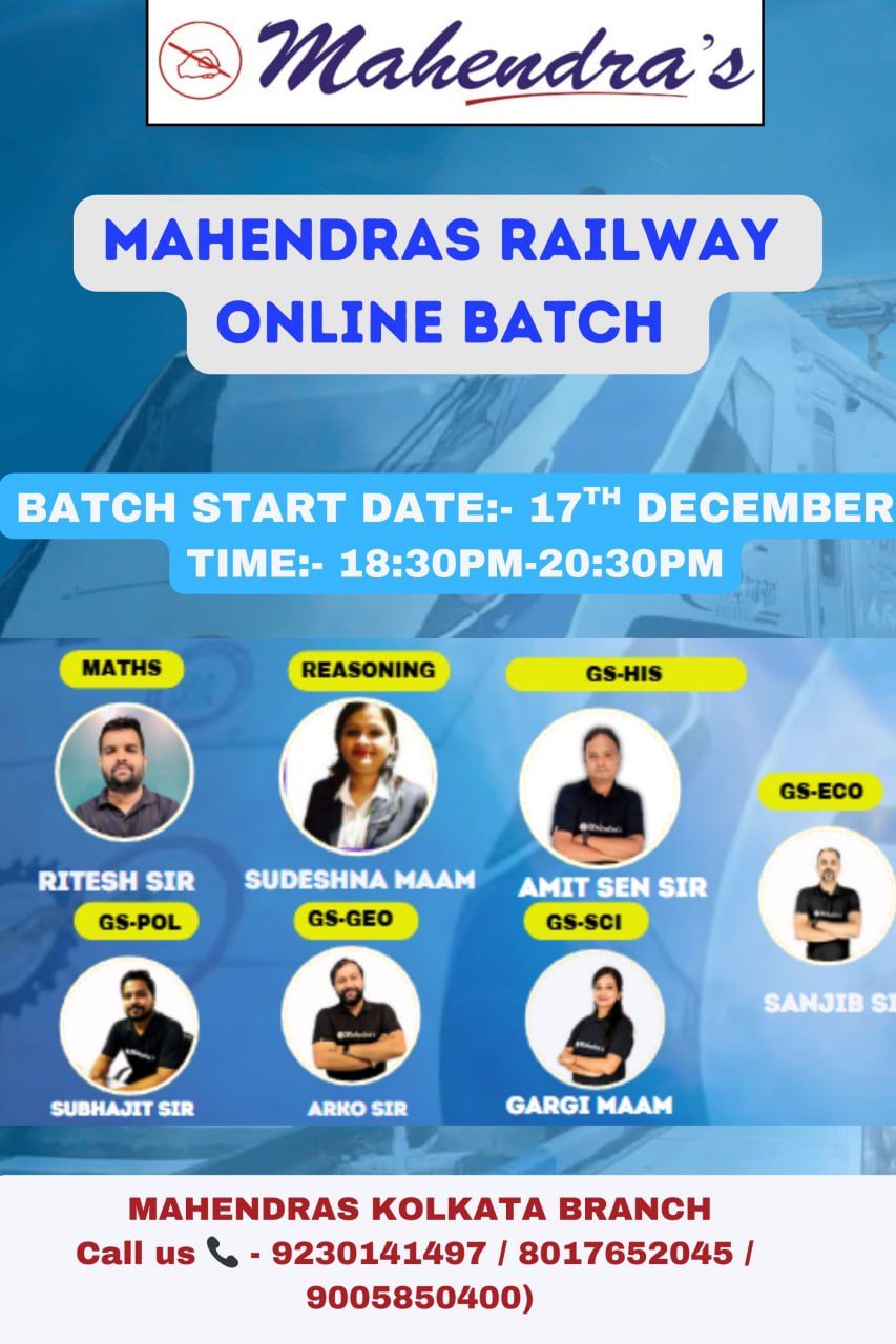 সব ধরনের সরকারি চাকরির পরীক্ষার (ব্যাঙ্ক, এসএসসি, রেলওয়ে, রাজ্যস্তর -এর সমস্ত রকম পরীক্ষা) প্রস্তুতির একমাত্র ঠিকানা- ১২০-লেনিন সরনি, ২য় ফ্লোর সুনিধি বিল্ডিং মৌলালি কলকাতা ৭০০০১৩।"